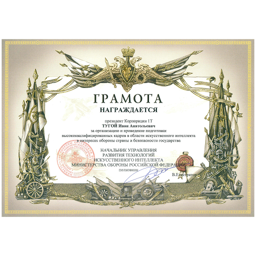Грамота за вклад в обучение граждан в области искусственного интеллекта