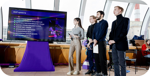 Решайте задачи от реальных заказчиков в составе ИТ-команды: берите на себя роли, проводите код-ревью и презентуйте результат. Вы получите опыт командной разработки в рабочих условиях. Готовые решения можно добавить в портфолио